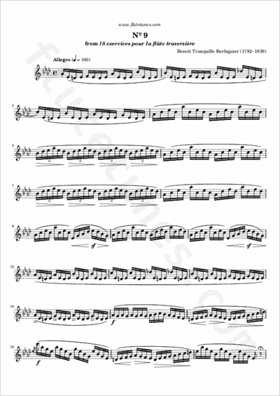 This is the ninth étude from 18 exercices pour la flûte traversière by French Romantic composer Benoit Tranquille Berbiguier.