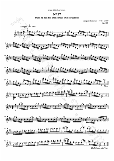 This Allegro is the twenty-seventh study from German flutist and composer Caspar Kummer's 32 Etudes amusantes et instructives, Op. 129, first published in 1858.