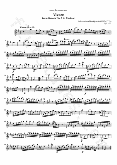 This is the closing movement of Johann Joachim Quantz's Sonata No. 5 in E minor for flute and continuo. It is one of many works for flute that Quantz composed for his student and patron Frederick II, King of Prussia.