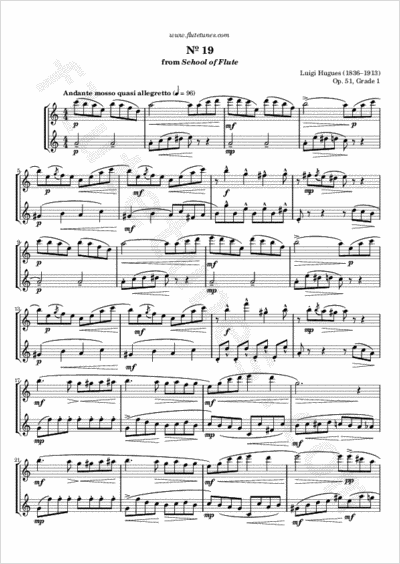 Today we present duet No. 19 from the first volume of Luigi Hugues's La scuola del flauto (The School of the Flute).