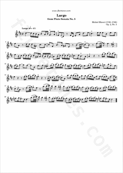 This Largo is the opening movement of the fifth of six sonatas for flute and continuo by French Baroque composer and flute virtuoso Michel Blavet, first published in Paris in 1732. This sonata is nicknamed “La Chauvet”.