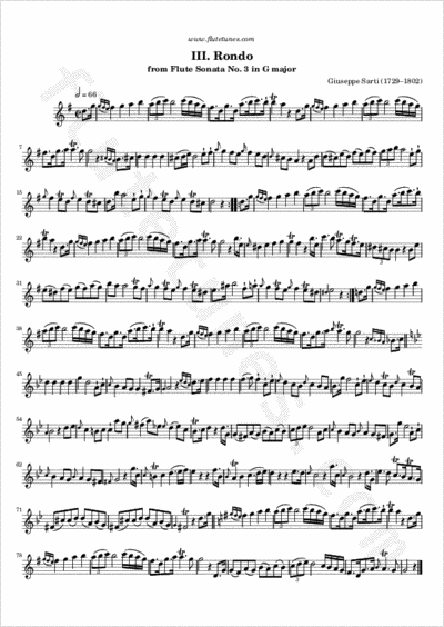 This Rondo constitutes the closing movement of a Sonata in G major for flute and continuo, written around 1750 by Italian composer Giuseppe Sarti.