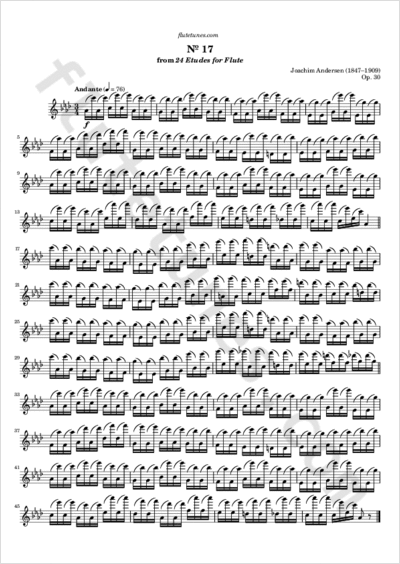 The jumpy Andante in A-flat major we present today is the seventeenth piece from Danish flutist and composer Joachim Andersen's Twenty-Four Etudes for Flute, Op. 30.