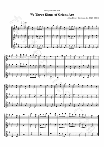 Both the lyrics and the music of “We Three Kings” were written by Reverend John Henry Hopkins, Jr. as part of a Christmas pageant for the General Theological Seminary in New York City, where he was instructor in church music. While the carol is suggested to have been written in 1857, it did not appear in print until 1863. Hopkins composed the song in Williamsport, Pennsylvania, where he was a pastor at Christ Episcopal Church. Researcher William Studwell reports that his purpose was to devise a special Christmas present for his beloved nephews and nieces during his annual holiday trip to his father's home in Vermont.