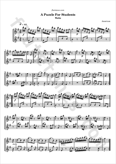 This a waltz for two flutes is taken from Blake's Young Flutist's Magazine, published in Philadelphia in 1833. Unfortunately Blake offers no indication of the origin of the piece, and searching the web for its mysterious title proved fruitless.