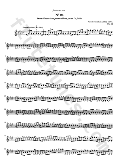 Today we propose the twenty-fourth piece from Exercices journaliers pour la flûte (or Tägliche Studien in German, i.e. “Daily Exercises”) by Austro-Hungarian composer Adolf Terschak. It was first published in 1867.