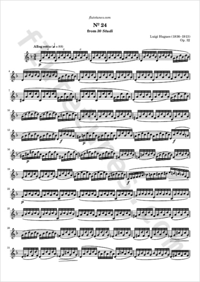 This agitated study is the twenty-fourth piece from 30 Studi, Op. 32, by Italian flutist, composer and arranger Luigi Hugues.