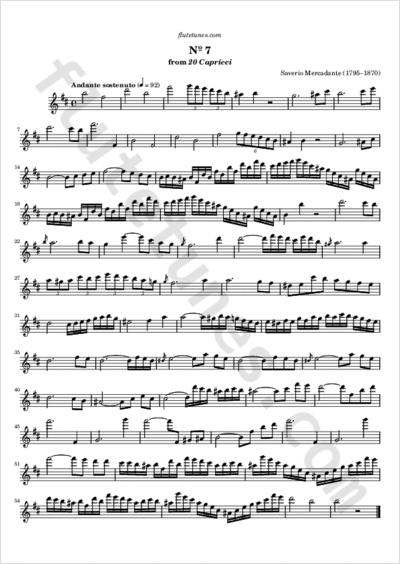 This is the seventh piece from a collection of 20 Capricci by Italian composer Saverio Mercadante. It is not certain when these caprices were composed, but scholars tend to associate them with Mercadante's early years in Naples, between 1811 and 1814.