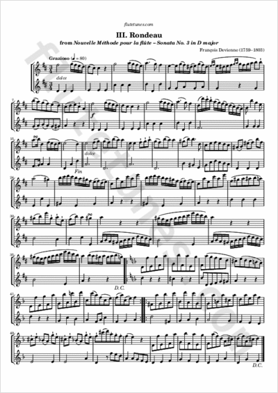 This duet is the closing movement of the third Sonata for two flutes included in the Nouvelle Méthode théorique et pratique pour la flûte by French flutist and composer François Devienne.