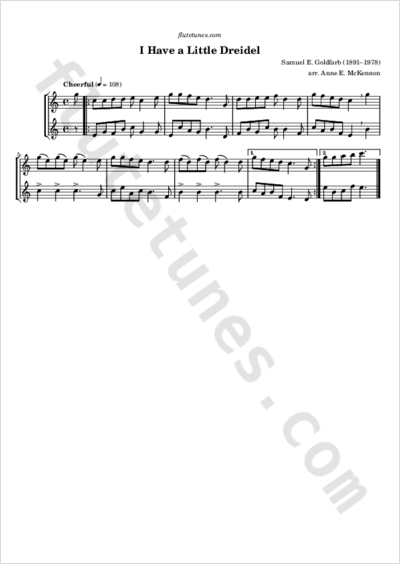 Today we propose an arrangement for two flutes of the traditional Hannukah song “I Have a Little Dreidel”, kindly contributed to our collection by Anne McKennon.